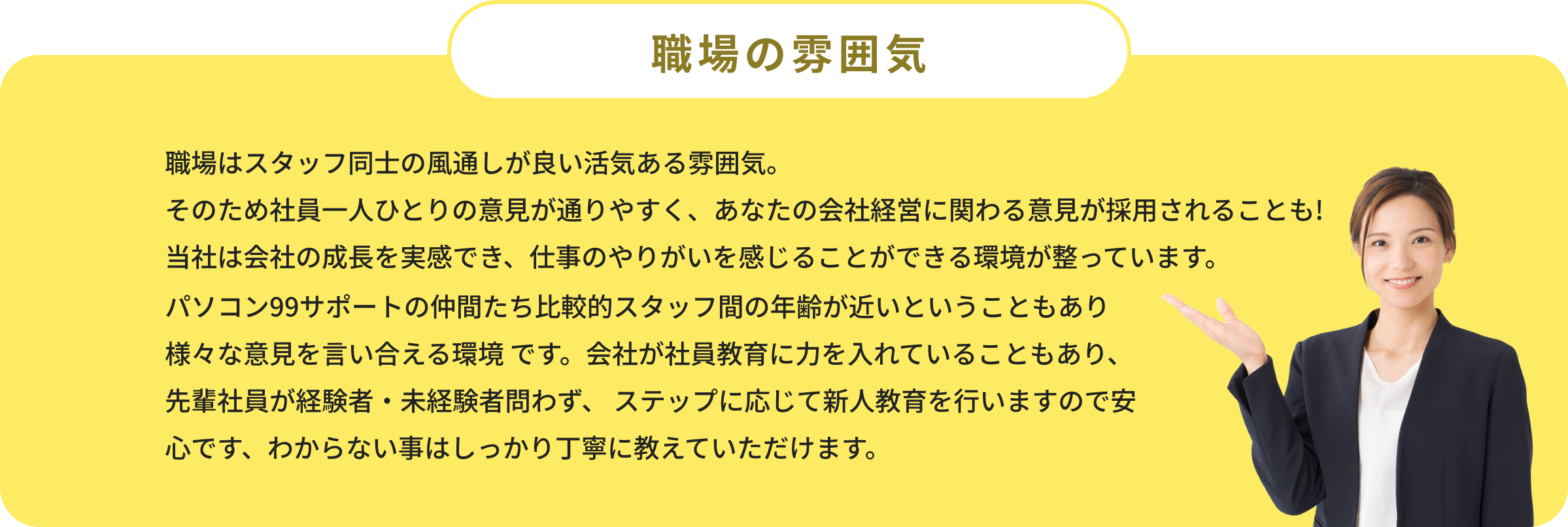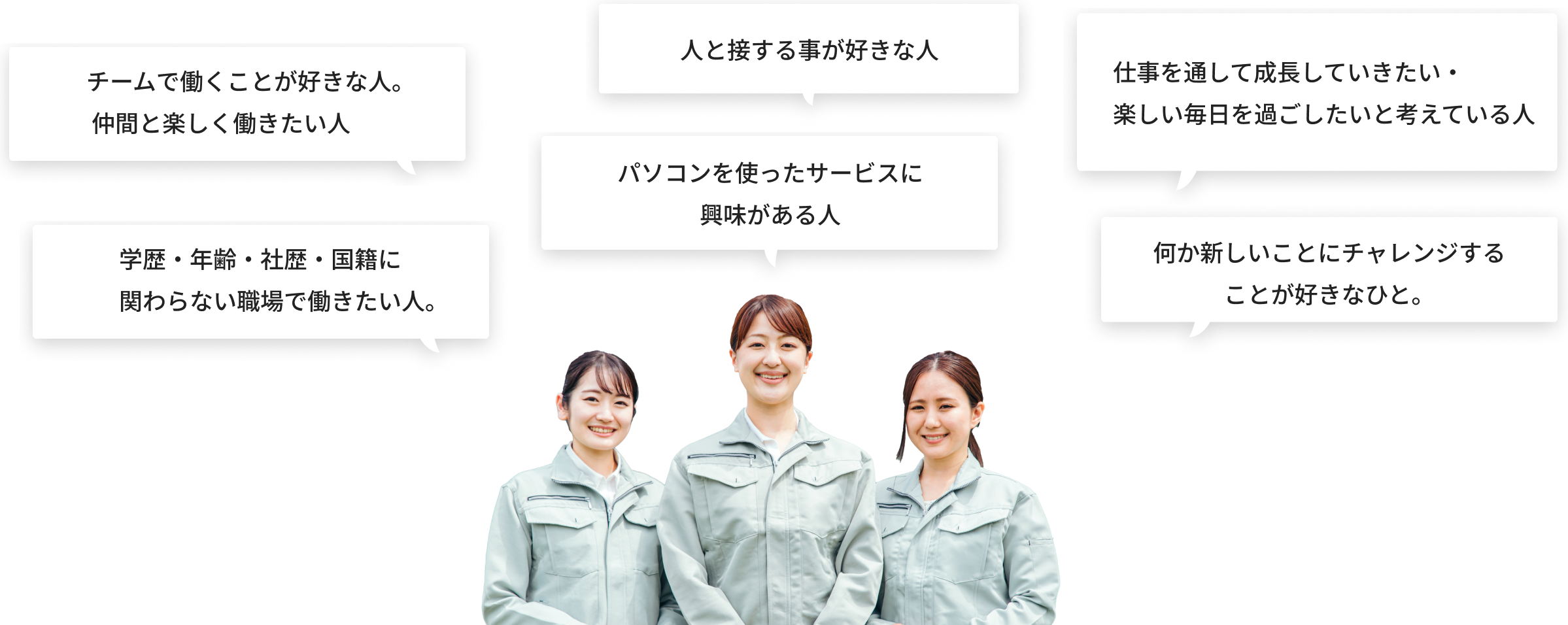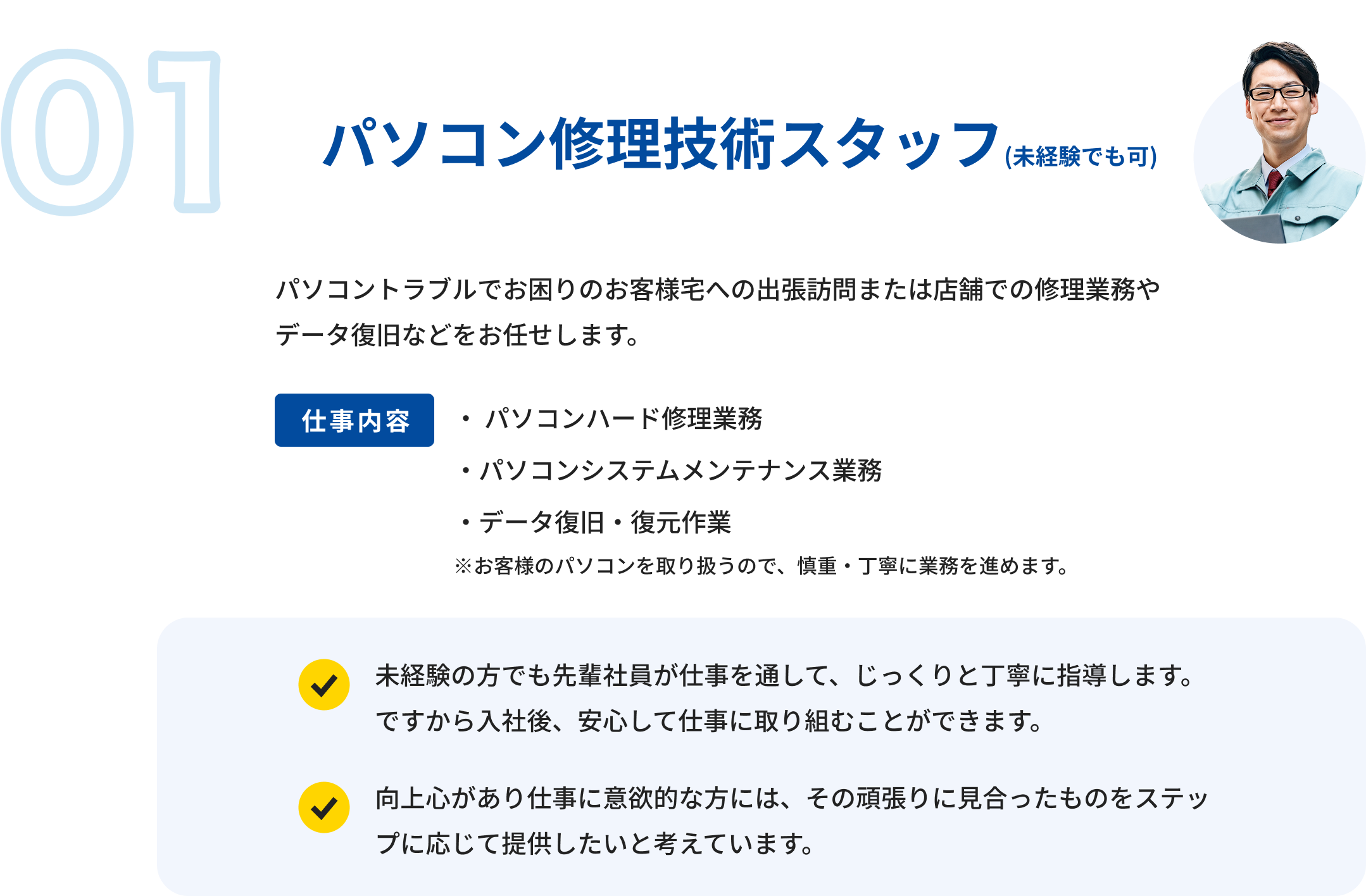 パソコンサポート業務を主力業務として活躍したい方・将来の業種変更の足がかりを探している方。