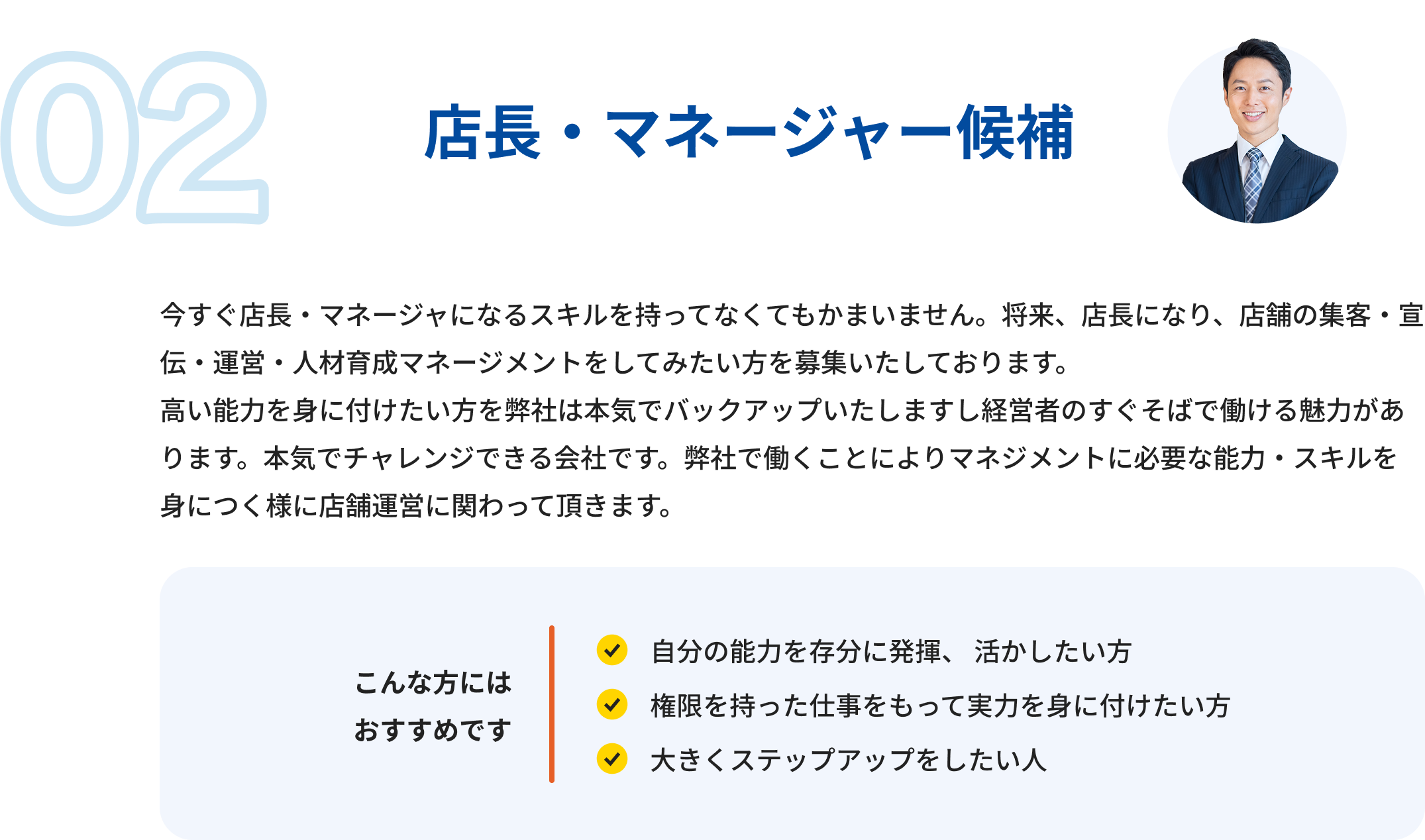 ご自分の得意なスキルを活かしたい向上心持ったやる気のある方をお待ちしています。