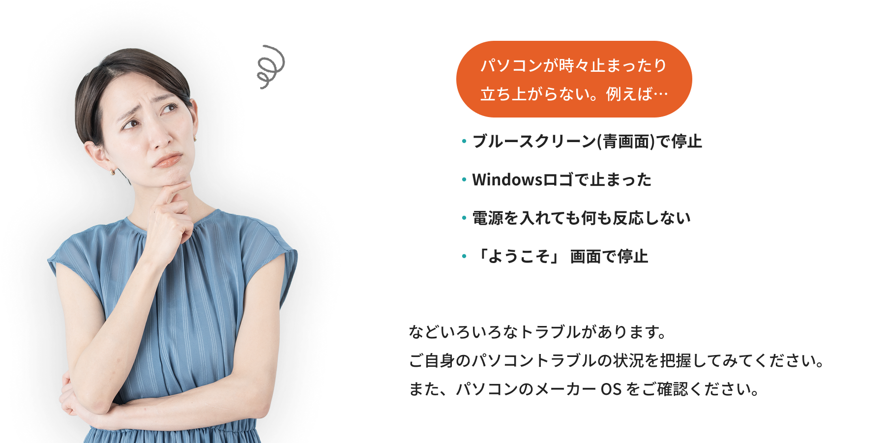 パソコンのトラブル症状を